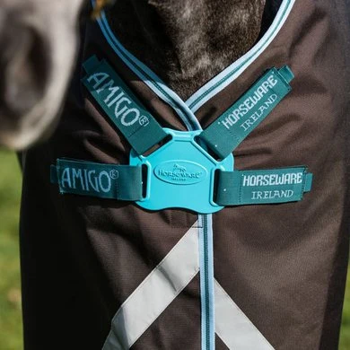 De Amigo Bravo 12 Plus Turnout Lite met discsluiting is een sterke 0g outdoordeken met een waterdichte en ademende 1200D polyester buitenstof en een gladde polyester binnenvoering. Deze deken wordt geleverd met een afneembare hals en is voorzien van het linersysteem en heeft dus bevestigingsringen voor horseware liners en halsstukken. De deken beschikt over een disc-front borstsluiting welke zorgt voor meer bewegingsvrijheid. Daarnaast is de deken voorzien van uitsparingen bij de benen, reflecterende strepen en drie kruissingels. Tenslotte heeft de deken een bilkoord en een staartflap.