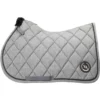 Deze luxe, ultrazachte pad is een streling voor het oog en voelt ook nog eens heerlijk zacht aan. De voering is extreem sneldrogend en vochtregulerend zodat de paardenrug op ieder moment droog blijft. De lederen PU-patch en dubbele singellussen zorgen voor een stevige ligging van de singel. De pad is afgewerkt met een rij van strass-steentjes omringd door twee koordbiezen in dezelfde kleur als de pad.