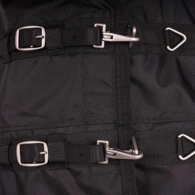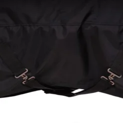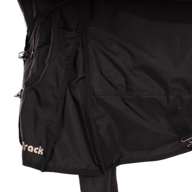 De waterdichte regendeken 1680D is uitgerust met sterke dubbele borstsluiting, een schoftbeschermer van fleece, loopsplitten, staartflap en koord en bevestigingsogen voor bilkoorden. kruissingels, loopsplitten en een dubbele verstelbare sluiting aan de voorzijde. Deze deken is ideaal voor gebruik bij slechte weersomstandigheden. De buitenzijde is gemaakt van duurzaam 1680 denier ballistic nylon. De deken is gevoerd en heeft geen vulling, dus ook goed over een andere deken te gebruiken. Paarden gaan niet overmatig transpireren onder een Back on Track deken. Verkrijgbaar in zwart in de maten 125-165cm