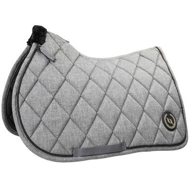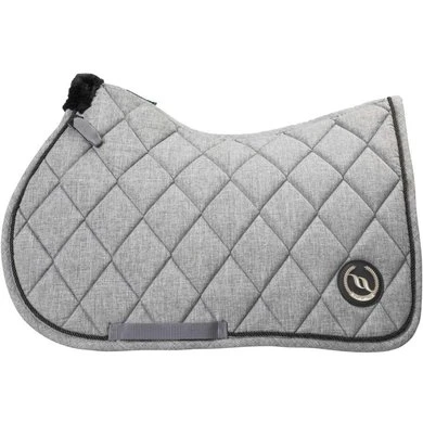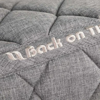 Het Haze Collection zadeldekje is uitgevoerd in melange bruin en melange grijs, zeer goed te combineren met andere producten in de Haze Collectie. Het Back on Track® nr I zadeldek heeft model gestaan voor de Haze zadeldek. Een extra hoge kamer voor optimale bewegingsvrijheid bij de schoft. Afgebiesd met koord en een leather-look badge aan de linker zijde met het Back on Track® logo in brushed metal. Kunstbont bij de schoft en uitgevoerd met D ring-straps voor bevestiging aan het zadel. Voordeel hiervan is dan er geen drukpunten ontstaan op de schouder die bij traditionele zadeldekken wel kunnen ontstaan. Het sjabrak heeft een vocht doorlatende- en schokabsorberende polyfill vulling.