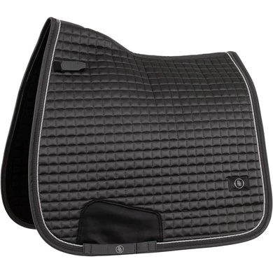 Het zadeldek heeft een elegante vierkante stepping en is sierlijk afgewerkt met een glitterbies, gedraaide koordbies en satijnen bies. Het zadeldek is voorzien van singellussen en korte zadellussen. Ze zijn verstelbaar met klittenband en de zadellussen zijn daarnaast ook voorzien van elastiek. Onder de singellussen bevindt zich een extra versteviging van PU-leder.