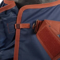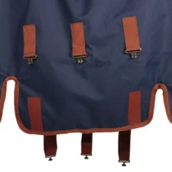 Deze lichtgewicht deken heeft een waterdichte en ademende 1200D ripstof buitenstof. De deken bevat een buikstuk met drie sluitingen en is aan de zijkanten lang om bescherming te bieden rond de benen en buik tegen regen en kou. De voorsluiting bestaat uit een T-haak met klittenband met magnetische gesp. De deken is gevoerd met een silk-feel stof. De deken bevat een staartflap, staartkoord en bevestigingspunten voor een halsstuk.
