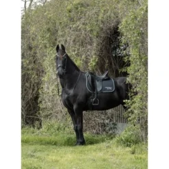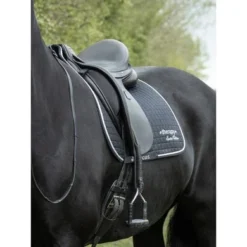 Het Therapy zadeldek heeft een wafelvoering die het zweet van het paard absorbeert, zonder het Therapy materiaal te hinderen. Verkrijgbaar in dressuur- en allround-/springsnit, met klittenbandbevestigingspunten en singellussen om het kussen op zijn plaats te houden onder het zadel en een hoge schoft/gevormde rug zorgt voor een comfortabele pasvorm.
