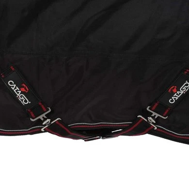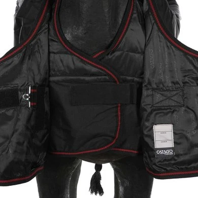 De CATAGO Dual Pro deken is een nieuwe en innovatieve tweelaagse deken speciaal ontwikkeld voor IJslandse paarden. De buitendeken is gemaakt van 1680D nylon en heeft een ademend vermogen van 5000 mvp, wat de deken zeer duurzaam en ademend maakt voor het paard om te dragen. De half hoge hals zorgt voor extra bescherming van de manen van het paard en een goede pasvorm voor IJslanders. Waterdicht tot 5000 mm. De leuke rode details en de reflecterende pijp geven de deken een sportieve uitstraling. De binnendeken is gemaakt met een 420 D buitenstof en heeft een klittenbandsluiting aan de voorkant en een singel, hierdoor is de deken geschikt als aparte staldeken. De deken wordt geleverd met een regendeken en een binnenkleed van 100 gram. Beide dekens hebben een polyester voering om de vacht van het paard glad en glanzend te houden. Een binnendeken van 300 g kan apart worden gekocht.