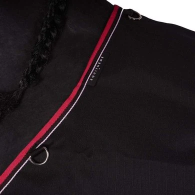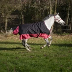 Waterdichte en ademende outdoordeken van 1200 denier ripstop polyester met getapete naden en nylon voering. Beschikt over een zeer grote waterdichte staartflap versierd met een reflecterende band, synthetische schapenvachtvulling op de schoft in de deken, lage kruissingels en bilkoorden. Man/vrouwsluitinf op de borst, versterkt met klittenbanden, met maataanduiding op rubberen patch.