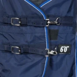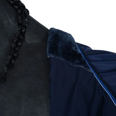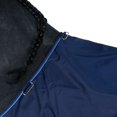 Zeer diep ontwerp zonder rugnaad en extra lange 32 cm “soft touch” micro-polar fleece vulling bij de schoft. Voorzien van reflecterende inzetstukken, lage kruissingels, verstelbare en afneembare elastische bilkoorden met drukknopen, staartflap en staartriem. Borstsluiting is verstelbaar met riemen en dubbele snelsluiting versterkt met klittenband.