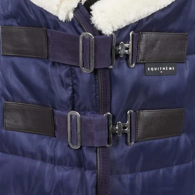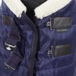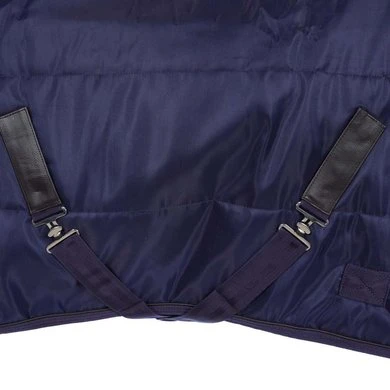 Staldeken met hals van synthetisch schapenvacht, met 200 gr / m2 polyfill en polykatoen voering. Lage kruissingels en staartriem. Dubbel verstelbare man/ vrouw gespen met klittenband op de borst. Ideaal voor in de stal, deze deken combineert comfort en stevigheid. Samenstelling: 100% polyester.