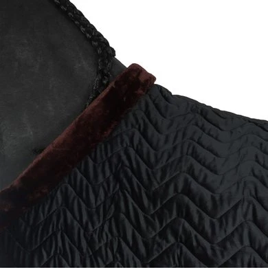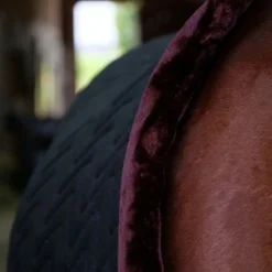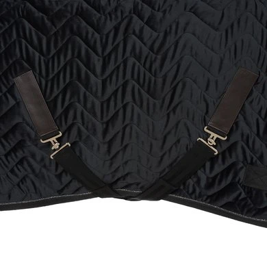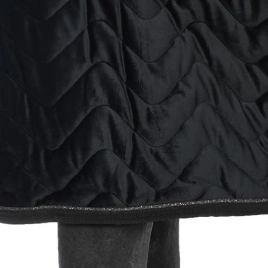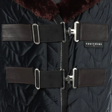 Functioneel en elegant, de EQUITHÈME “Teddy” fluwelen deken is uniek qua uiterlijk en samenstelling. Voor meer finesse is de buitenzijde gemaakt van gewatteerd fluweel en versierd met een heel mooi glitterkoord. Coolmax-voering voor een uitzonderlijk ademend vermogen. Tegen de kou is deze deken voorzien van 150 g/m² vulling en perfect voor gebruik in de stal. En om het plaatje compleet te maken: een kraag van synthetisch schapenvacht met hoge dichtheid, 2 man/vrouw sluitingen vooraan en lage kruissingels. Voor het comfort van het paard is de deken uitgerust met bilkoorden en een staartriem.