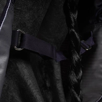 Waterdichte en ademende outdoordeken van 600 denier ripstop polyester met getapete naden. Heeft een zeer grote waterafstotende staartflap, synthetische schapenvacht vulling op de schoft, lage kruissingels en een verstelbare bilriem.Snelsluiting op de borst, versterkt met klittenband.Halve hals met nylon voering.