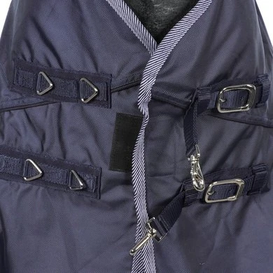 Xtreme deken 1680D waterproof polyester en een fleece voering. 2 voorsluitingen met snelsluiting, staartflap, loopsplitten en bilkoorden. Materiaal: 100% polyester Waterdichtheid 3000 wr/wp, ademende werking 3000 mvp