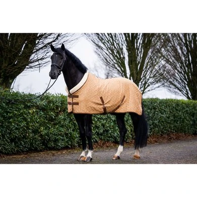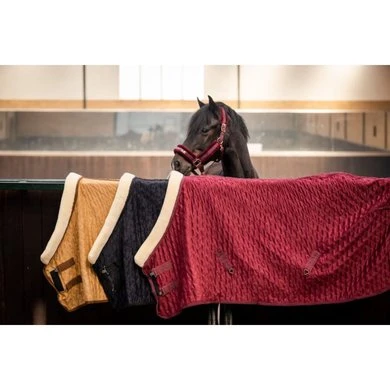De binnenzijde is ingelegd met artificieel konijnenvel voor een ultra zacht gevoel tegen de huid en om schuurplekken op borst of schouders te voorkomen. Ideale deken voor op transport en tijdens evenementen.