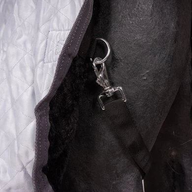 De binnenzijde is ingelegd met artificieel konijnenvel voor een ultra zacht gevoel tegen de huid en om schuurplekken op borst of schouders te voorkomen. Ideale deken voor op transport en tijdens evenement.