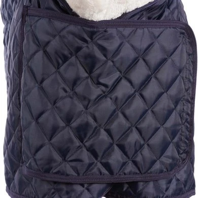 Luxe gewafelde showdeken met teddy bont kraag en 1 voorsluiting, borstflap, kruissingels. De binnenzijde is gevoerd met artificieel konijnenvel voor een ultra zacht gevoel tegen de huid en om schuurplekken op borst of schouders te voorkomen. De vulling is ongeveer 160 gram