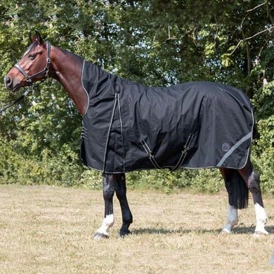 Deze HKM deken is waterdicht en beschikt over een hoog ademend vermogen. De deken is winddicht, scheurvast en heeft een optimale pasvorm doordat er meer ruimte is voor de hals. De deken is gemaakt van een sterke 1200D buitenstof. Deze deken heeft twee verstelbare snelsluitingen op de borst, twee kruissingels en bilkoorden. De deken is wasmachinebestendig tot 30 graden en mag in de droogtrommel.