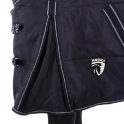 De Horka staldeken uni is een 200g staldeken met katoenen binnenvoering en is gemaakt van 1200D polyester aan de buitenkant. De deken heeft een dubbele gespsluiting op de borst, kruissingels met elastisch uiteinde en rubber stops, een schoftbondje, extra hoge loopsplitten en een bilkoord.
