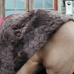 Met de Show Rug Velvet zal je zeker opvallen op stal. Het deken heeft een 160g vulling en kan tijdens de winter perfect dienen als staldeken thuis of op concours. De buitenkant van het deken heeft een zachte en chique velvet stof. Het stijlvolle kubus patroon maakt het bovendien moeilijker om het deken te scheuren. Het deken is gevoerd met artificiƫle konijnenvacht, wat schuurplekken voorkomt. Daarnaast creƫert het kleine lucht vakjes die een isolerende laag rond je paard vormen waardoor hij extra warm blijft.