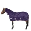 De buitenkant van het deken is een 900D Ribstop stof. Ribstop is een stof die verstevigde garen bevat waardoor het deken enorm moeilijk te scheuren is. Een ander voordeel van het materiaal is dat het schaafselaftsotend is, waardoor je hooi en stro er eenvoudig afborstelt. Omdat je de keuze hebt tussen 100g, 200g en 300g kan je het deken afstemmen op de noden van je paard. De vulling is een fiberfil vulling, wat dezelfde prestaties als dons heeft zonder geur te absorberen. De voering is een micro-polyester fiber, wat een zacht katoengevoel heeft.