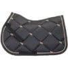 De skin friendly velvet zadeldoek is verkrijgbaar in zowel sping als dressuur vorm. Er is enkel een riempje voor de singel, zodat je geen storende riempjes voor je zadel hebt. Het Kentucky logo is iets hoger geplaatst, zodat er nog voldoende ruimte is om het dekje te borduren.