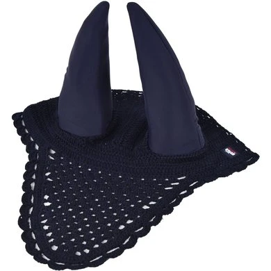 Katoenen gehaakte vliegenmuts met elastische oren met Neopreen – geruisloos effect. Corporate patch aan één kant.