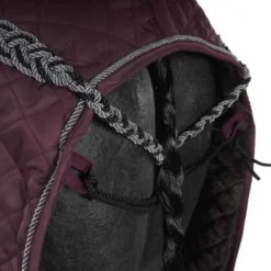 Super chique showdeken dat alles heeft. Mooi stikel wordt aangevuld door een luxe fleece kraag. Dubbele buiksingels kunnen aan de binnen- of buitenkant van het deken worden bevestigd en zijn aan beide uiteinden afneembaar, waardoor het ideaal is om bij wedstrijden te gebruiken, of op transport. Ongelooflijk zachte faux konijnenbont voering polijst de vacht tot een perfecte glans, waardoor stof tot een minimum wordt beperkt. Mooi gevlochten staartornament maakt van dit deken een echte showstopper.