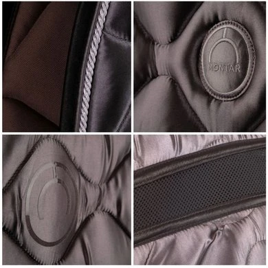 Dlux zadeldekjes van Montar zijn gemaakt van een glanzende en luxe satijnen stof in een modieus quiltpatroon. Dit zadeldek in de prachtige kleur Grijs is speciaal ontworpen voor dressuur. De binding is in zwart en pijp in grijs en zilver. Het zadeldek is aan beide zijden van het zadeldek versierd met een elegante siliconen Montar-logoprint en aan de linkerkant is het zadeldek versierd met een prachtig geborduurd Montar-logo. Het zadeldek heeft een sneldrogende mesh-stof aan de binnenkant en ademend airmesh aan de bovenkant van het zadeldek. Aan het zadeldek is een praktische singelband met klittenband met logo bevestigd om het zadel op zijn plaats te houden. De zadeldekjes zijn verkrijgbaar in veel verschillende kleuren zodat je het zadeldek gemakkelijk kunt matchen met de rest van je outfit. Vind hier jouw favoriet!
