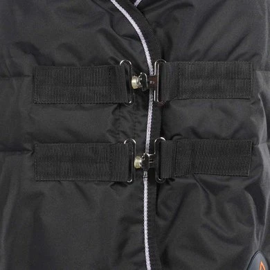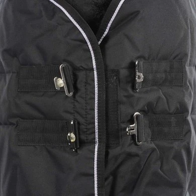 ONE equestrian staldeken met 200grams vulling. Kruissluiting en staartkoord, borstsluting en klittenband sluiting. Logopatch op de linkershouder. De deken is donkerblauw.