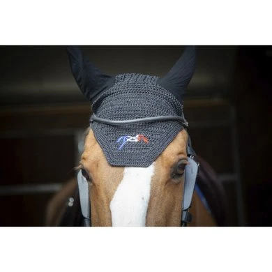 Oornetje met glanzende draden. Pénélope logo geborduurd blauw wit rood kleuren. Elastische oren.