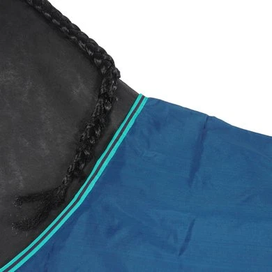 Flexibele deken voor alle seizoenen, met meer warmte en minder gewicht. Een unieke barrière-technologie heeft een buitenkant van 1000D polypropyleen die de waterdichte en ademende barrièrelaag eronder beschermt. Polypropyleen is een sterker alternatief voor het veel gebruikte polyester turnoutmateriaal. Wordt geleverd met antistatische, anit-bacteriële polyester voering en thermisch gebonden fiberfill. Klassieke originele snit met dubbele frontsluitingen. Beenbogen, reflecterende strips, hals- en voeringlussen, kruissingels en glansverhogende polyester voering. Thermobonded fiberfill voor superieure en langdurige warmteopslag. Hals apart verkrijgbaar.