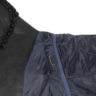 Flexibele deken voor alle seizoenen, met meer warmte en minder gewicht. De unieke barrièretechnologie heeft een buitenkant van 1000D polypropyleen die de waterproof en ademende laag eronder beschermt. Wordt geleverd met antistatische, anit-bacteriële polyester voering en thermisch gebonden fiberfill. Surefit-halsontwerp met V-voorsluiting voor bewegingsvrijheid om te grazen. Beenbogen, reflecterende strips, staartkoord, voering loops, kruissingels en glansverhogende polyester voering.