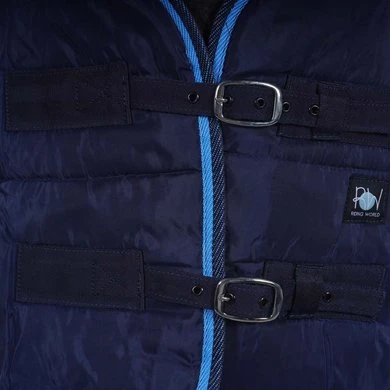 Ongeëvenaarde prijs- kwaliteitverhouding! 300 g/m² polyfill gevulde staldeken met hals van 420 denier polyester gevoerd met niet schurende en antistatisch polyester. Loopsplitten en fleece schoftbontje. Dubbele gespsluiting op de borst, lage kruisssingels, staartriem en staartflap.Machine wasbaar op 30°C. Niet in de droger drogen.