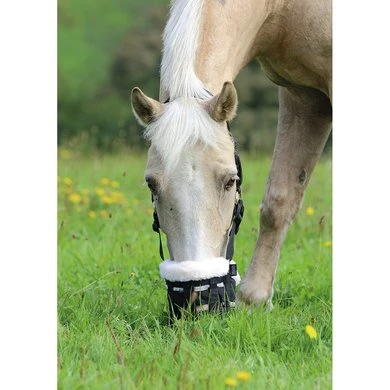 De Shires graasmaskers zijn gemaakt om te ondersteunen in een bepaald voedingsregime en speciale dieëten, De graasmaskers zijn teruggesneden onder de kin om onnodige druk te voorkomen en de pasvorm te verbeteren, Het graasmasker is voorzien van een rubber onderkant met een gat in de bodem waar het gras doorheen kan, verstevigde nylon tralies zorgen er voldoende ventilatie is, de binnenzijde van het graasmaker en de hals en keelriem zijn voorzien van een zachte voering om schuren tegen te gaan, Voorzien van een D-ring om een lijn aan te bevestigen, Deze DELUXE uitvoering is extra gevoerd met synthetische wol.