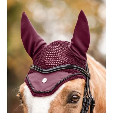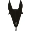 Kwaliteitsvliegenmuts met luchtdoorlatende mesh-oren. Met een zilverkleurig metalen logo en een glinsterend sierkoord.